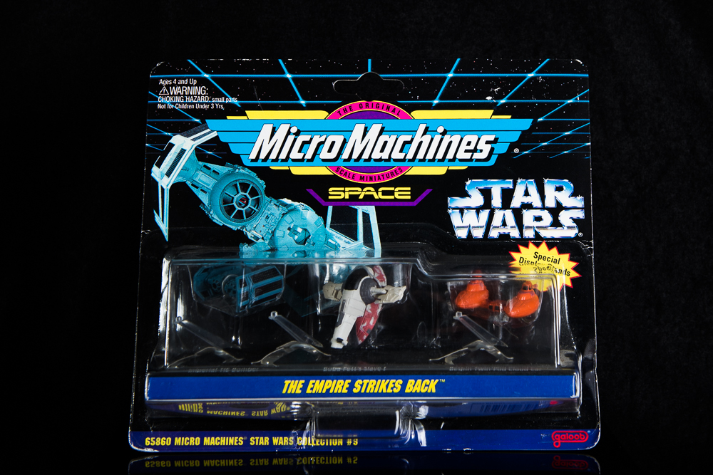 Released in 1994 this 3 pack set of vehicles are sealed on original factpry sealed packaging which is in good condition. The set comprises of, Imperial Tie Bomber, Boba Fett's Slave 1& Bespin Twin Pod Cloud Car. Also included in the pack are special display stands