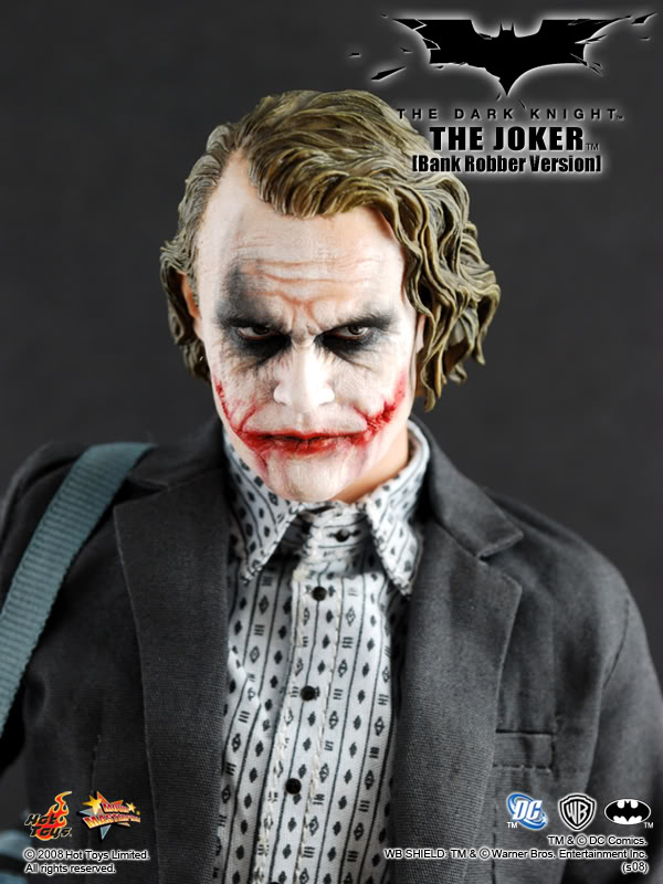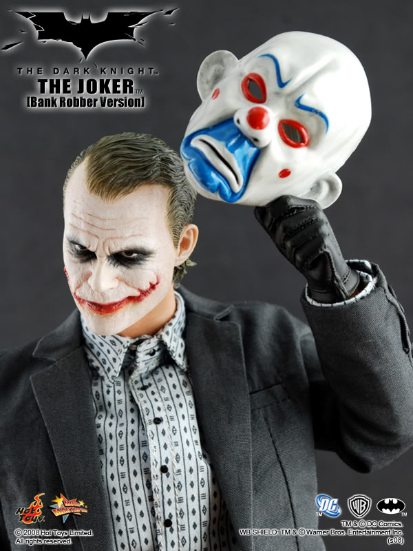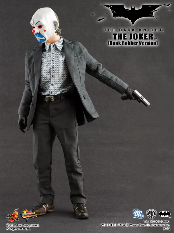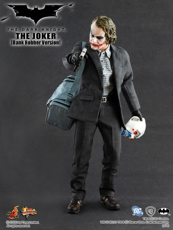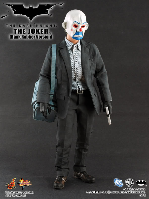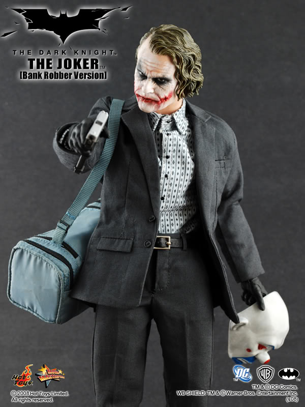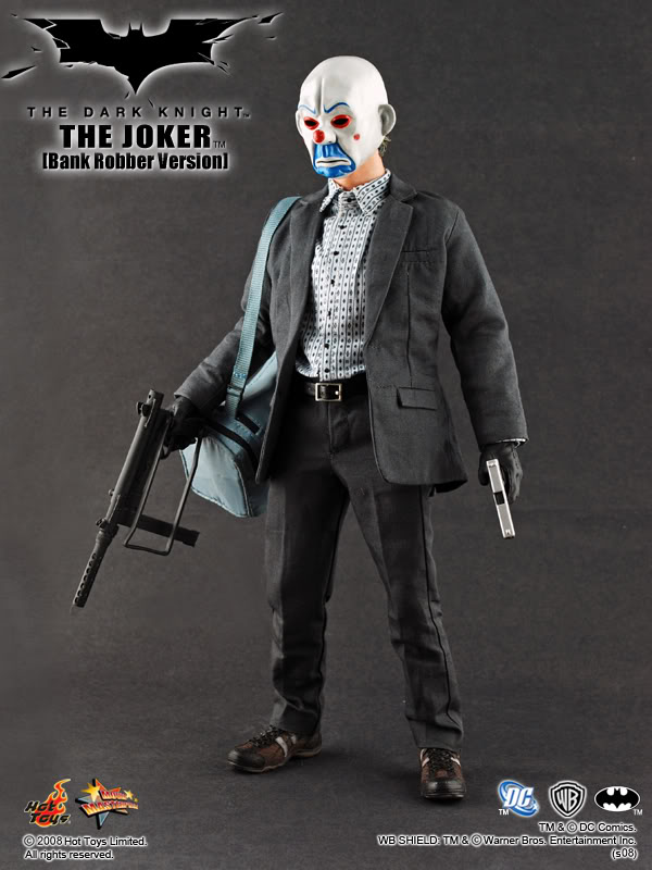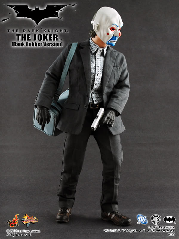 Bank Robber Joker collectible figure stands approximately 31cm tall, features with highly articulated Hot Toys figure body with over 32 points of articulation. Dressed in highly detailed costume includes shirt , suit and shoes.