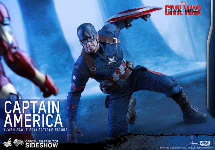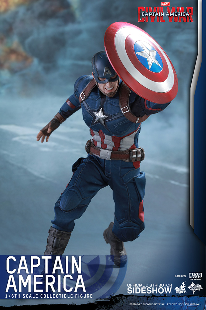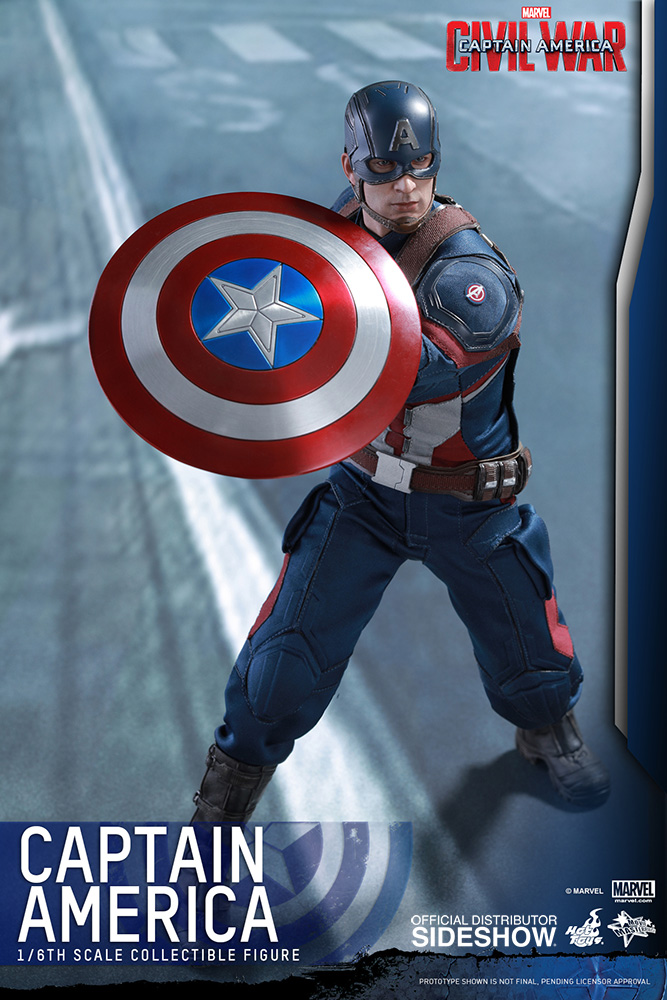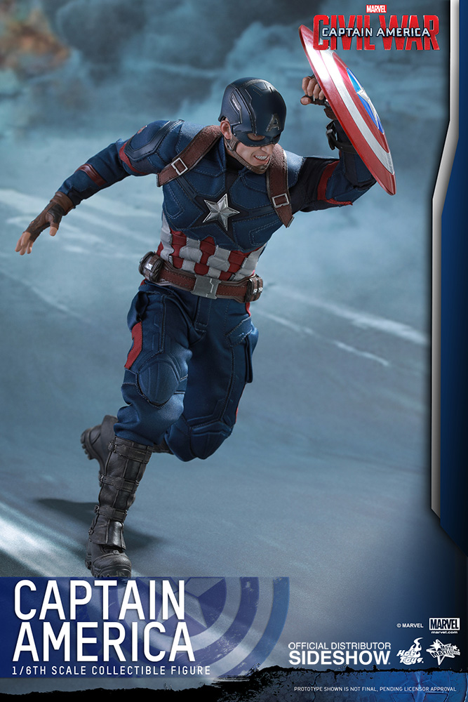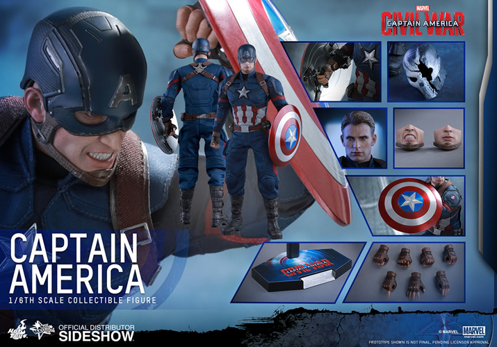 The movie-accurate Captain America Collectible Figure is specially crafted based on the image of Chris Evans as Captain America/Steve Rogers in Captain America: Civil War. It features a helmeted head sculpt with two interchangeable lower faces, a newly painted un-helmeted head sculpt of Steve Rogers, a newly developed body that naturally portrays Captain America’s muscularly toned body, a completely new Captain America suit, a metal circular shield, a broken Crossbones helmet, and a specially designed Captain America: Civil War themed figure stand!