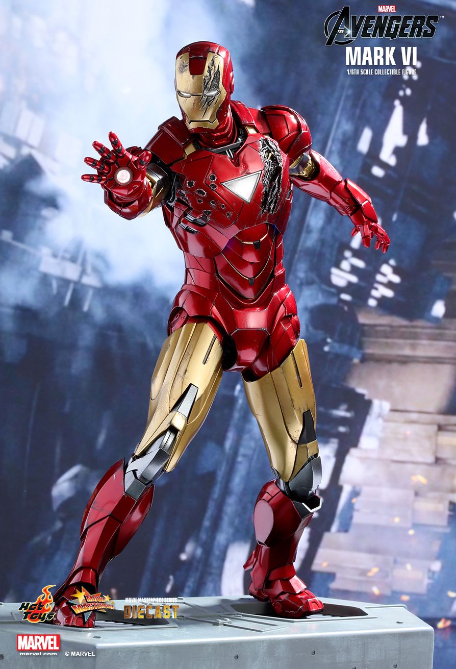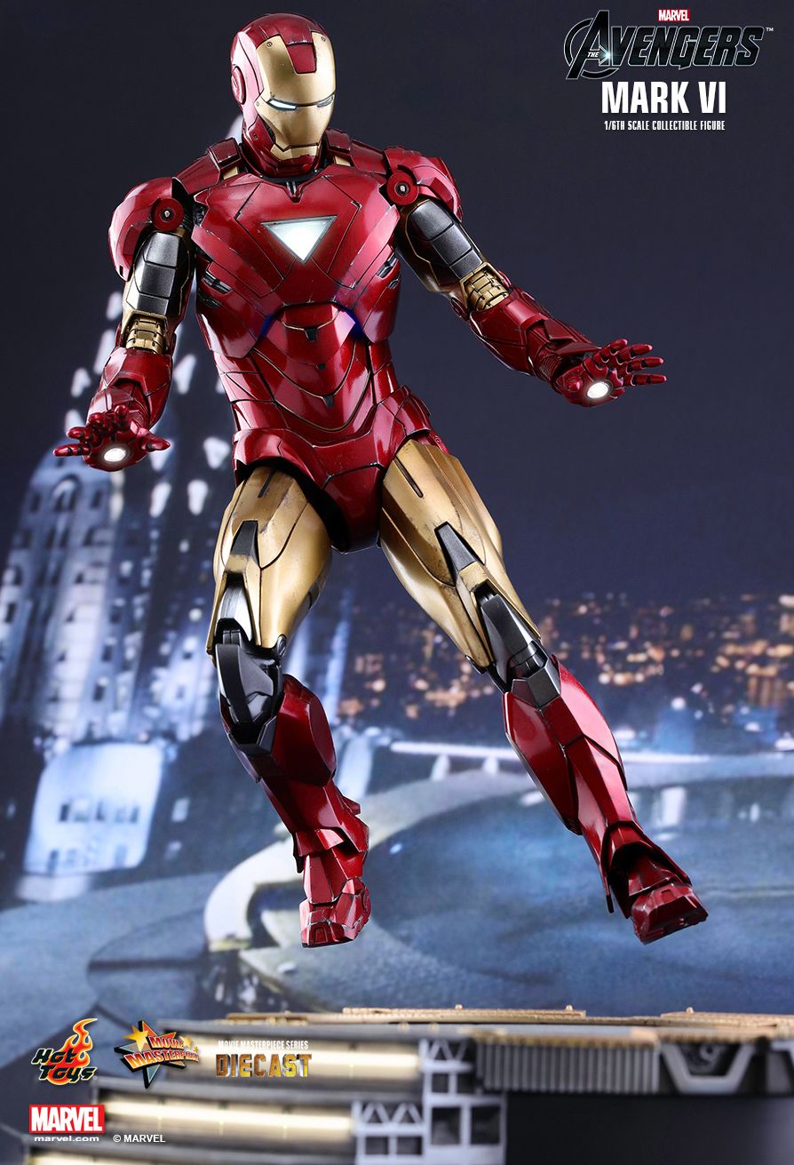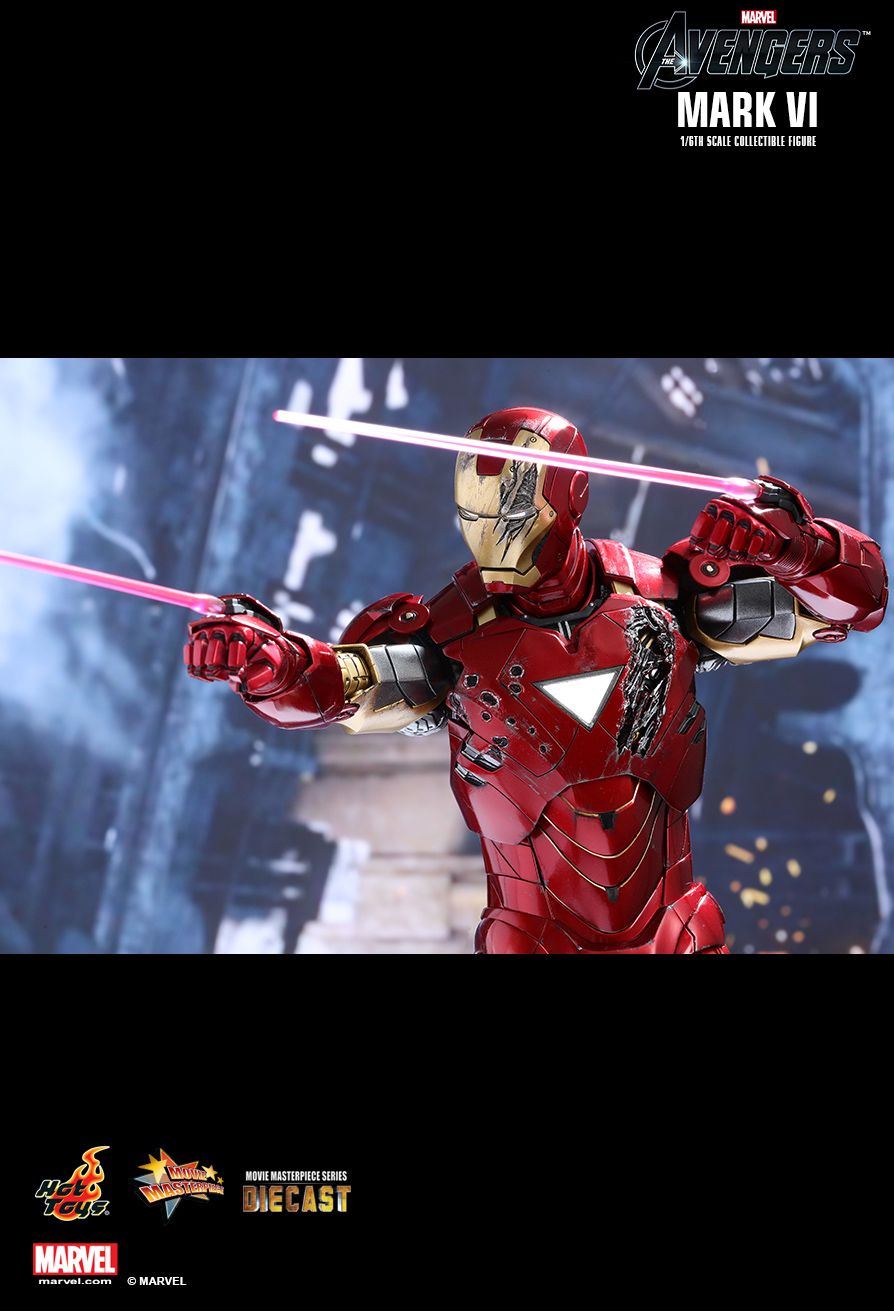 Many fans consider the Iron Man Mark VI to be one of their favorite Iron Man suits that Tony Stark has used in the Marvel Cinematic Universe. Featuring an all-new arc reactor core and new triangular shape design, the Mark VI is able to fend off Hammer Drones and withstand the powerful lightning strikes from the mighty Thor! Sideshow and Hot Toys are thrilled to revisit this fan-favorite suit and officially introduce a brand new sixth scale collectible figure in the MMS Diecast Series - the Mark VI as seen in Marvel’s The Avengers!