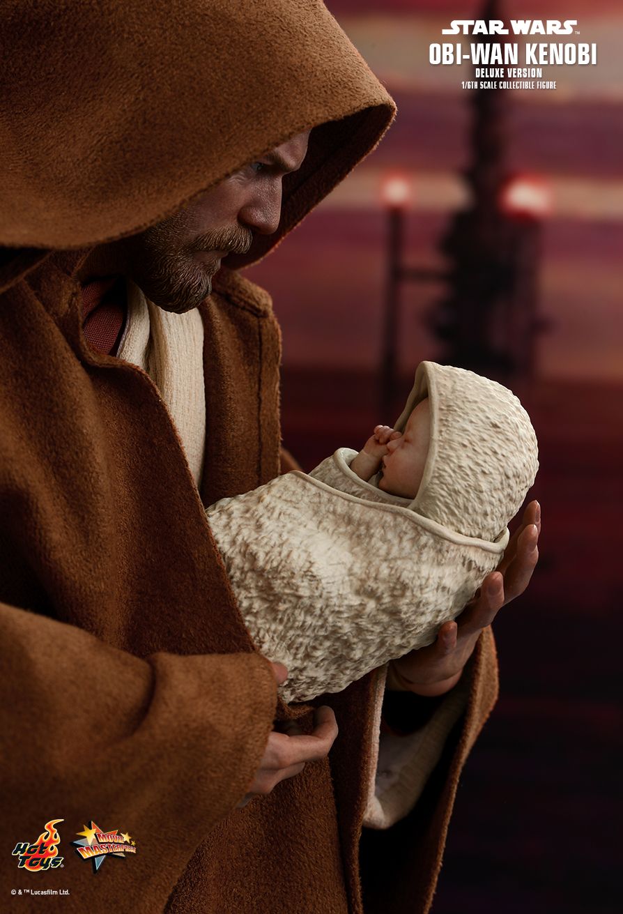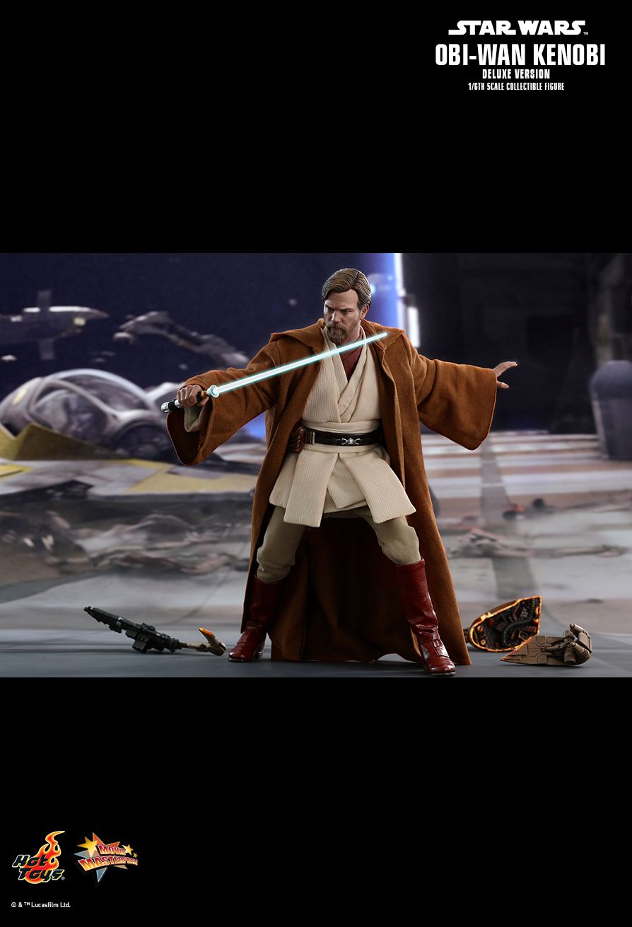 Sophisticatedly crafted based on the appearance of Obi-Wan Kenobi in the film, the 1/6th scale collectible figure features a newly developed head sculpt with a stunning likeness, a skillfully tailored Jedi robe and tunic, an LED light-up lightsaber, severed battle droid parts and a specially designed figure base with interchangeable graphic cards!