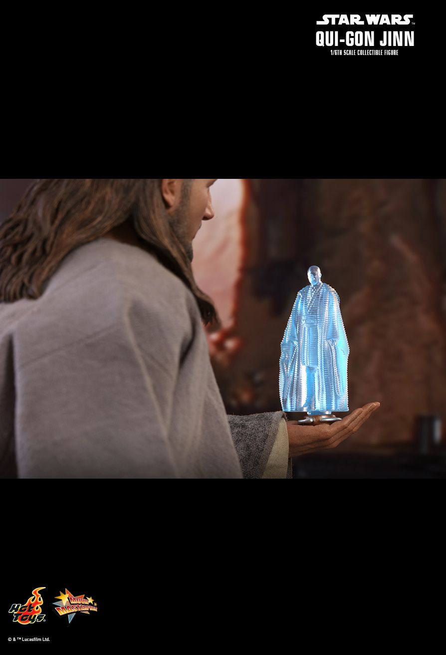 Skillfully crafted based on the appearance of Qui-Gon Jinn in the film, this sixth scale collectible Star Wars figure features a newly developed head sculpt, finely tailored Jedi robe and tunic, a desert poncho, LED light-up lightsaber, Comlink, grappling hook, a hologram projector with interchangeable holograms, and a movie-themed figure base!