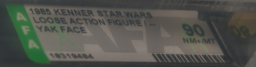 This is the Yak Face figure from the Last 17 vintage Star Wars figures that were released in 1985 which has been graded by the Action Figure Authority and is still in it's slip cover.