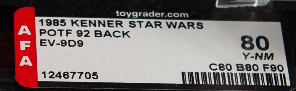 This is the EV-9D9 figure from the Power of The Force 1985 Release of vintage Star Wars figures which has been graded by the Action Figure Authority.