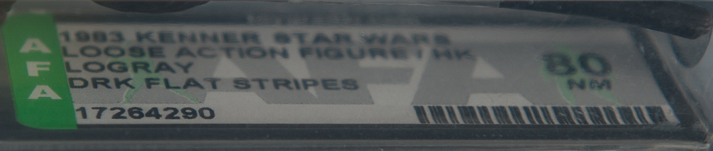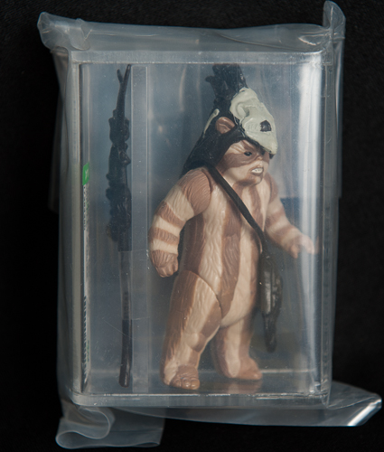 This is the logray figure from Return of The Jedi 1983 release and is the dark flat stripe variation which has been graded by the Action Figure Authority and is still in it's protective slip cover.