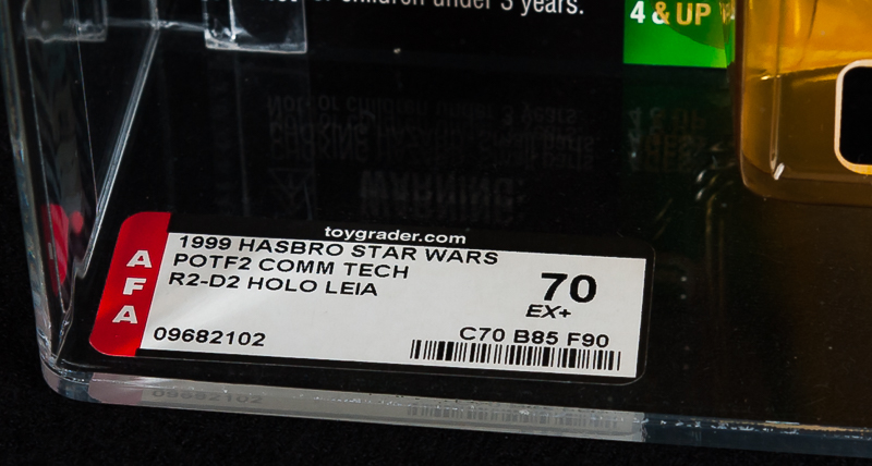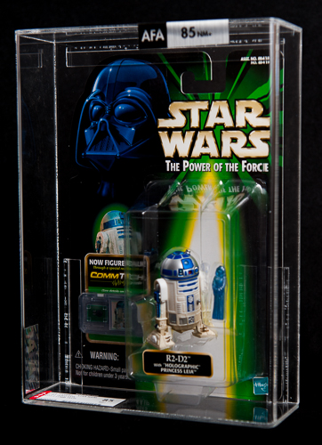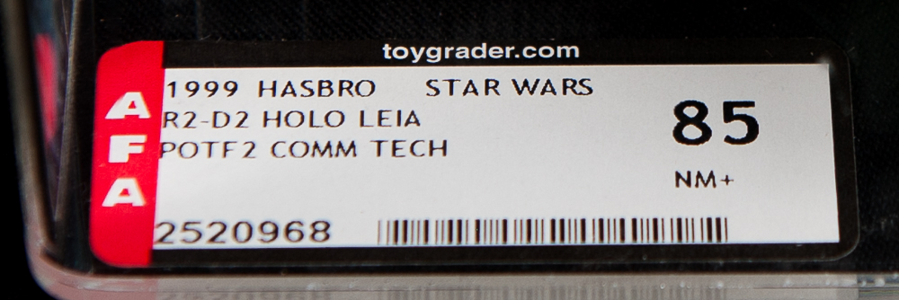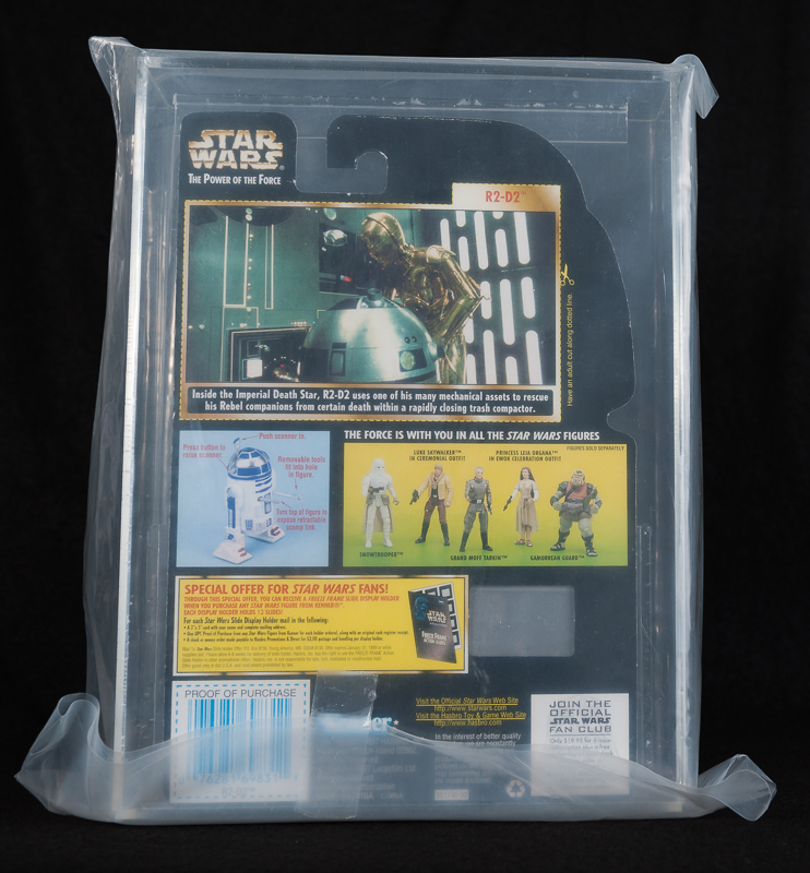 This is the R2-D2 figure with Holographic Princess Leia from the 1999 release of The Power of The force 2 Cards which has been graded by the Action Figure Authority.