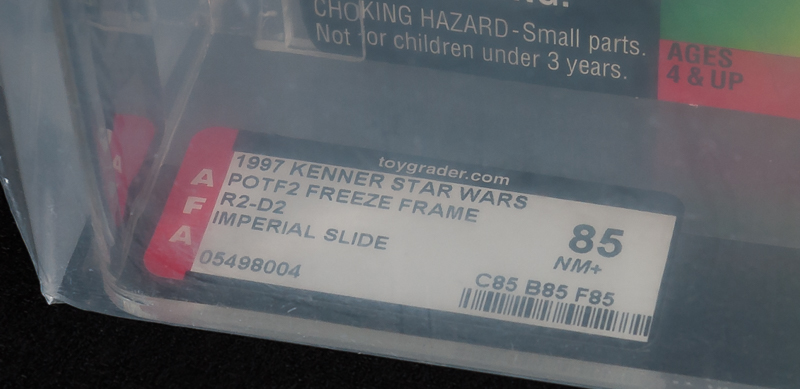 This is the R2D2 figure from the Kenner Freeze Frame line. This is the Imperial Slide variation which has been graded by AFA and is still in its sealed bag.