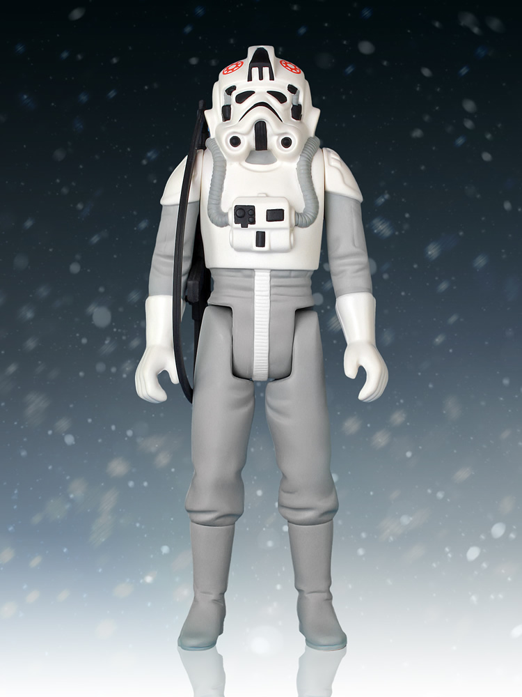Digitally scanned from mint 3 ¾” Kenner originals and reproduced at a Jumbo size, no detail has been overlooked. Roto cast and made of durable plastics, this jumbo figure includes a faithfully reproduced accessory AT-AT Driver Rifle! It even comes fully articulated!