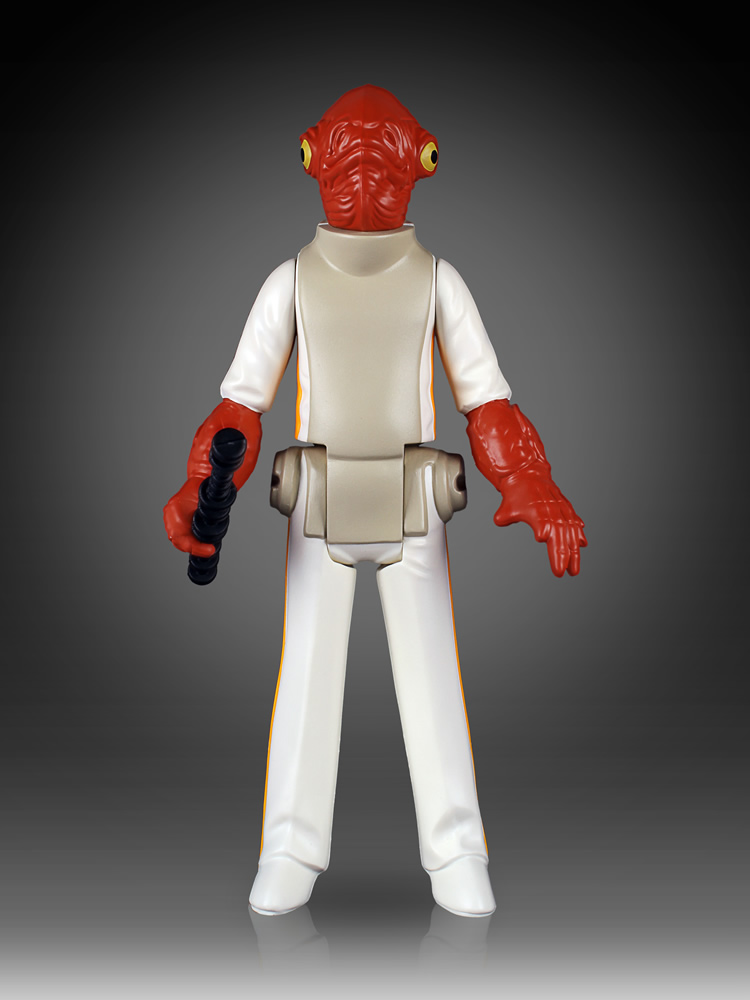 Inspired by the Kenner vintage Star Wars figures, Gentle Giant is proud to bring you the Rebel Alliance's master tactician, Admiral Ackbar, in jumbo size! Renowned for his situational awareness in combat and for being one step ahead of the enemy, the fan favorite Mon Calamari admiral is just like you remember, only BIGGER.