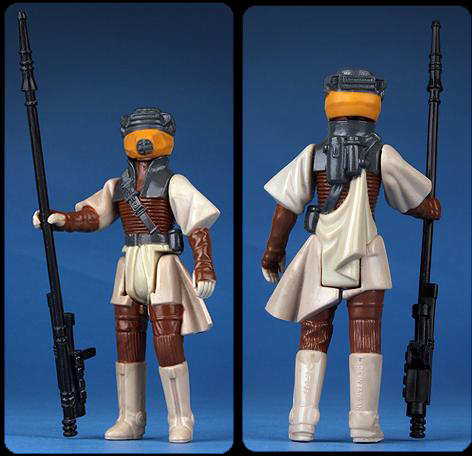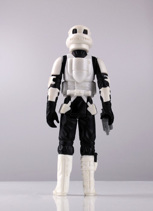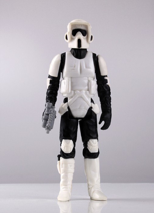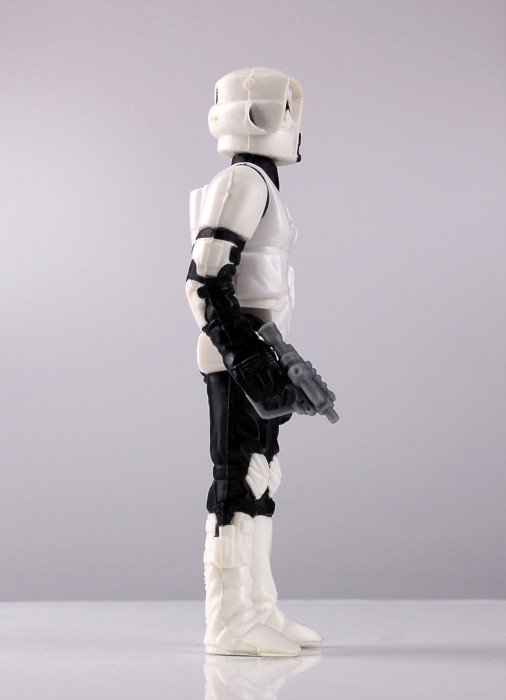 Digitally scanned from mint 3 3/4" Kenner originals and reproduced at a Jumbo size, no detail has been overlooked. Roto cast and made of durable plastics, this jumbo figure includes a faithfully reproduced Scout Blaster accessory! It even comes fully articulated!