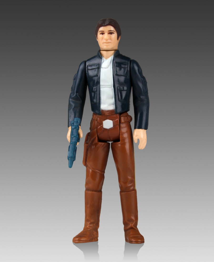 Digitally scanned from mint 3 3/4" Kenner originals and reproduced at a Jumbo size, no detail has been overlooked. Roto cast and made of durable plastics, this jumbo figure includes a faithfully reproduced smuggler blaster and yellow light saber! It even comes fully articulated!