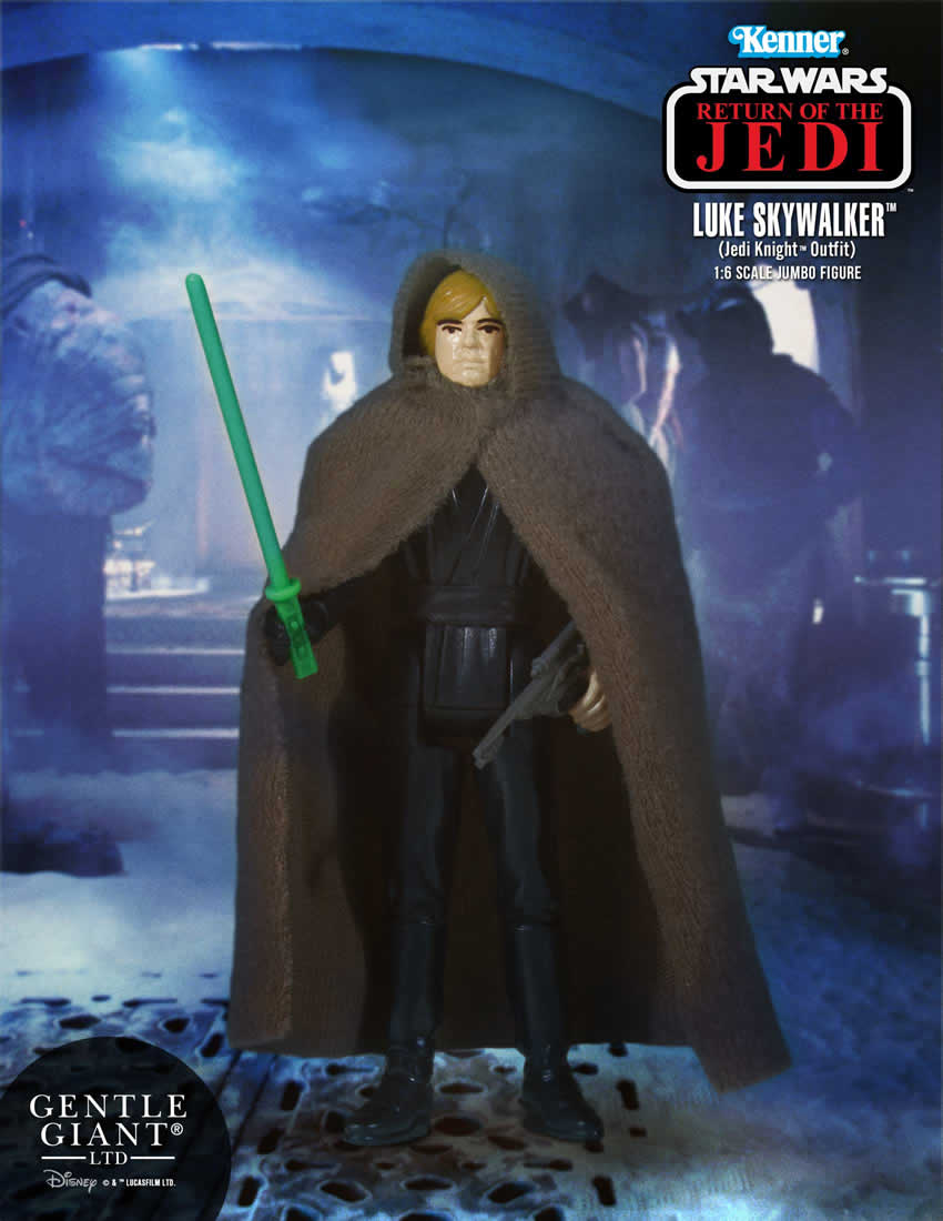 Inspired by the Kenner vintage Star Wars figures, Gentle Giant is proud to bring you the Young Jedi Knight, Luke Skywalker, in jumbo size! Returning to Tattooine once again, this time to help his friends, the Young Jedi arrives coaked in his hooded robe at Jabba's Palace.