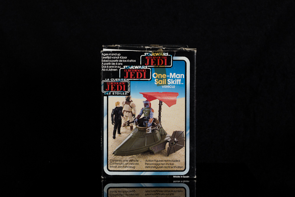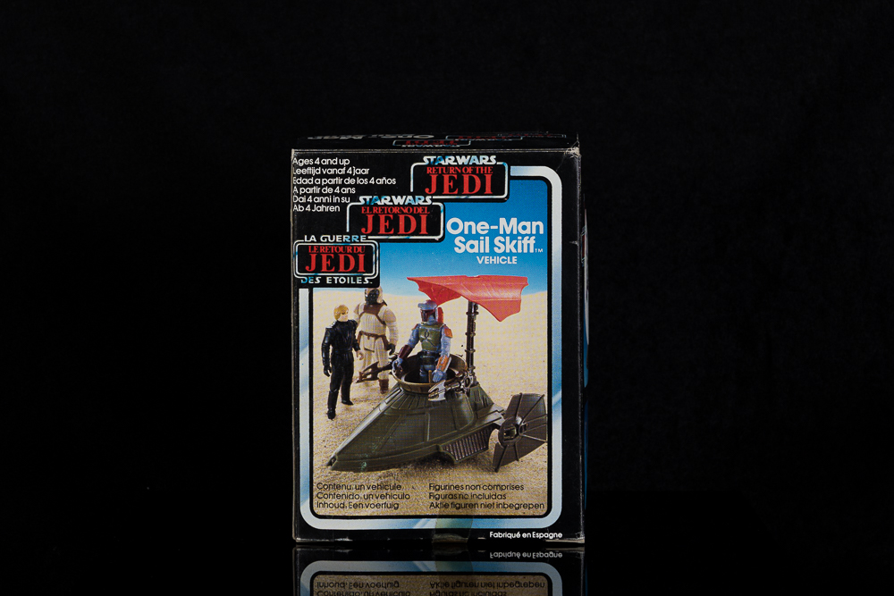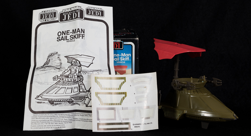The box is in good condition and the Skiff is in excellent condition and full working order, complete with used sticker sheet and instructions.