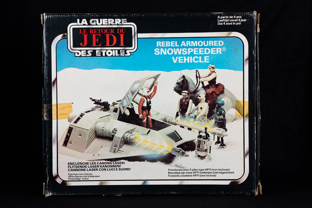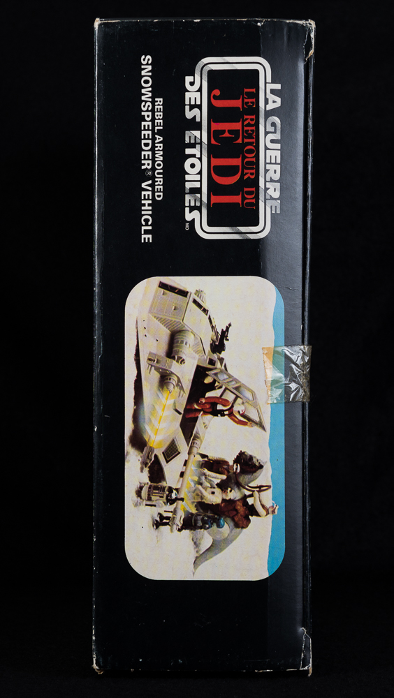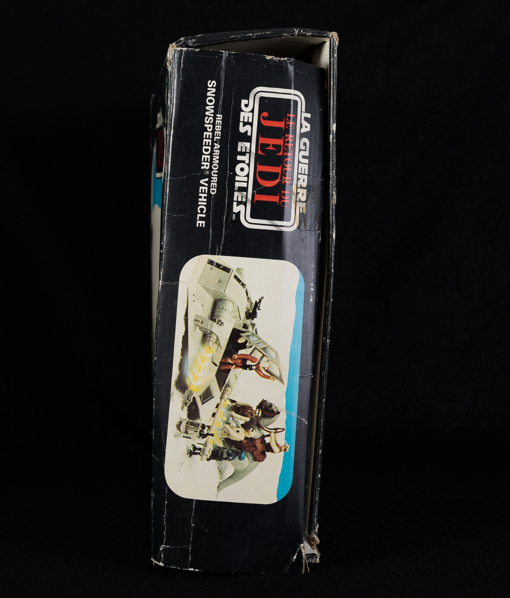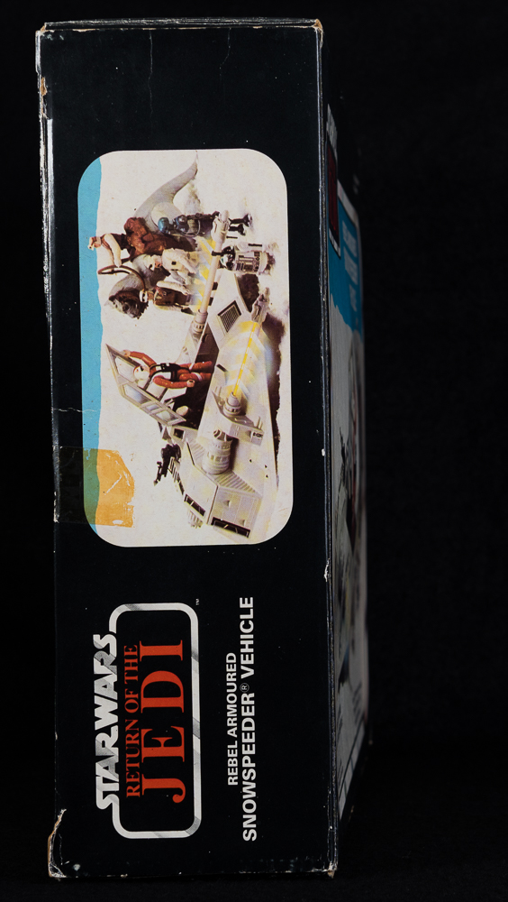 The box is in fair condition and the Snowspeeder is in very good condition just missing the harpoon.