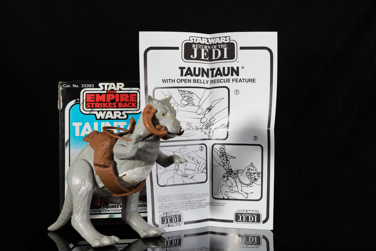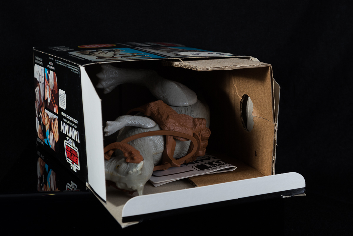 The box is in very good condition with Boba Fett collector tokens.The Tauntaun is in excellent condition complete with original cardboard insert, instructions and no splits to the reigns or saddle straps.