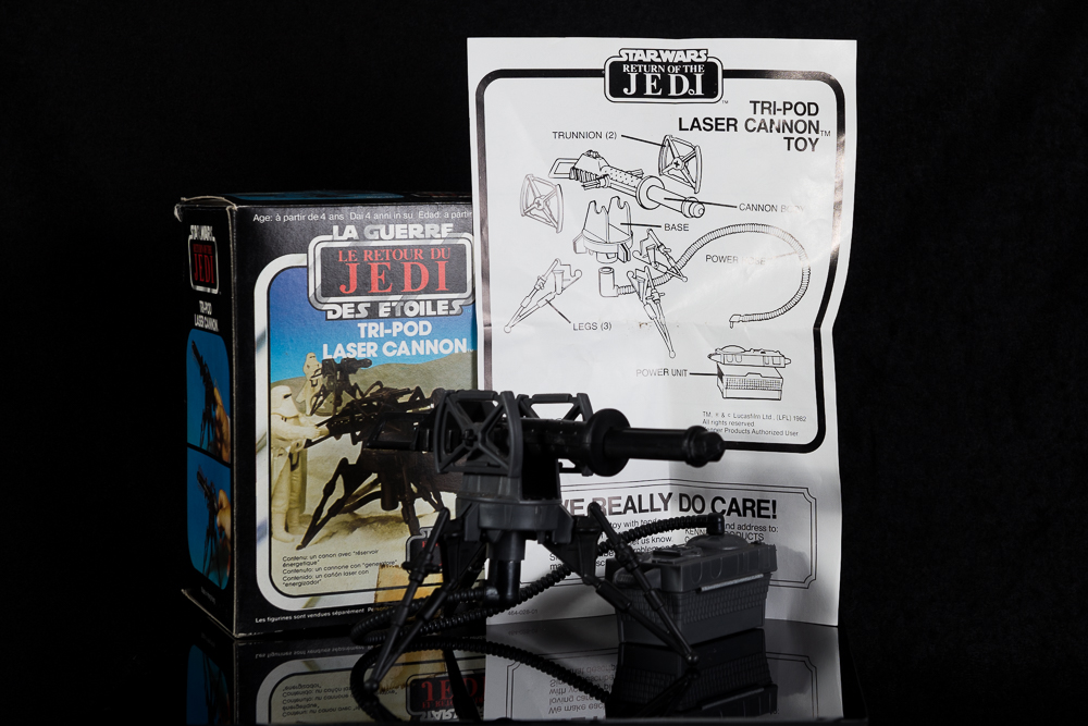 Tri-Pod Laser Cannon with its original Bi Logo box, cardboard insert and instructions, the box does show signs of wear but is in good condition.