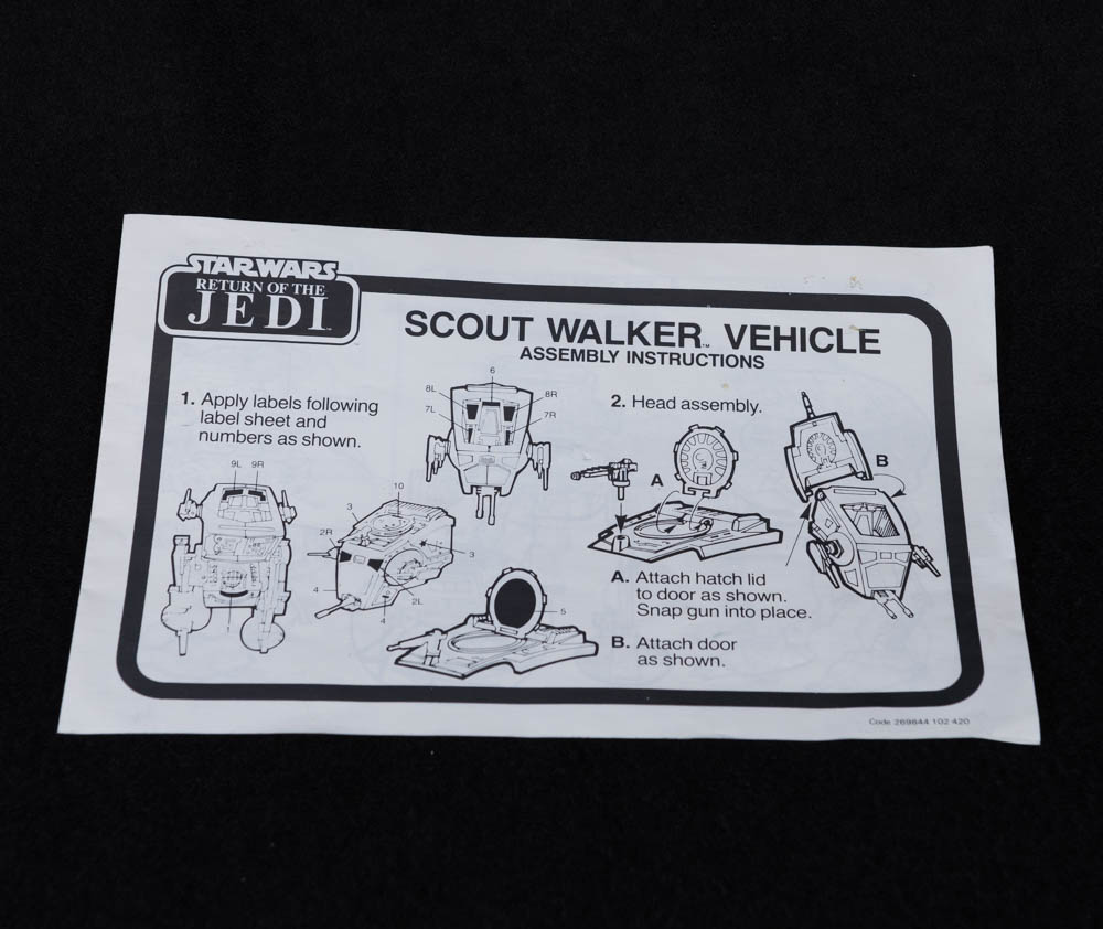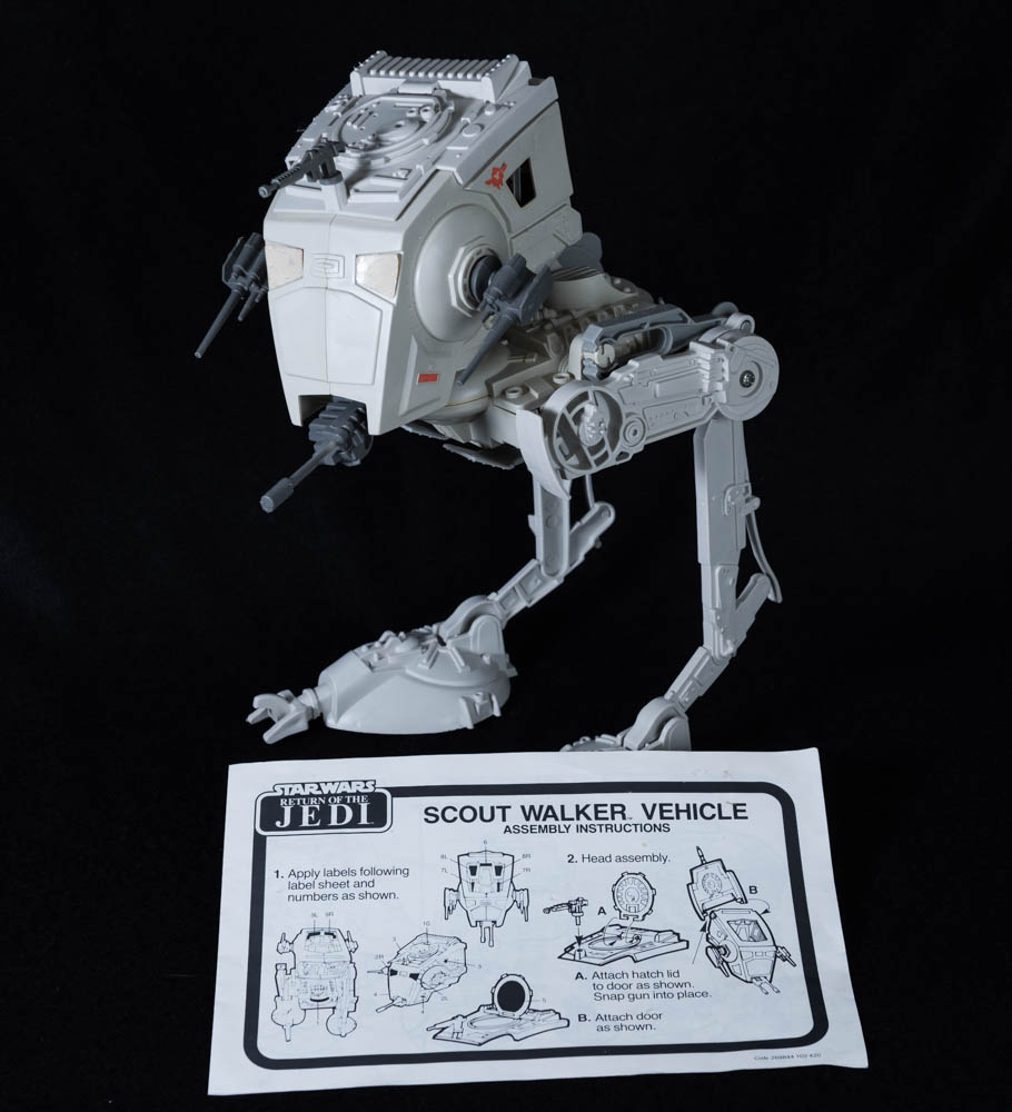 The AT-ST is in very good condition with fully working walking mechanism. No missing parts and all stickers are present and includes the instruction sheet.