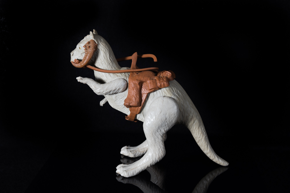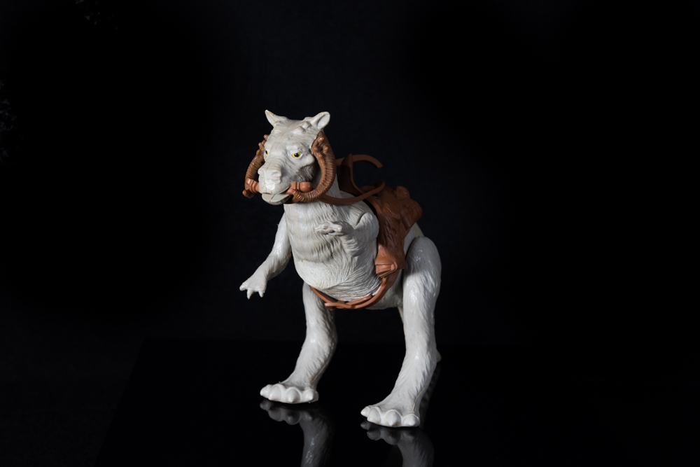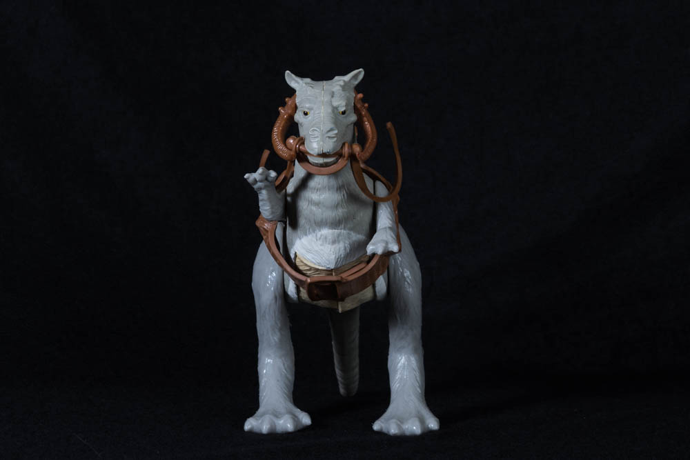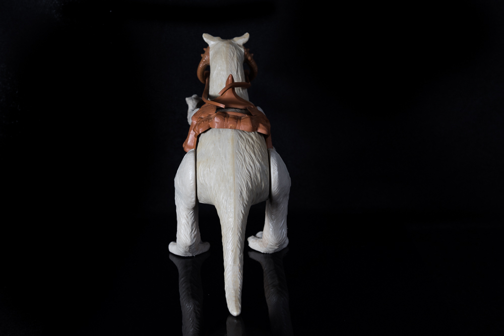 Solid belly Tauntaun in good condition. There is some discouloration to the body and complete with reigns and saddle but both do have splits.